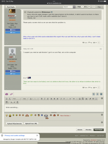 Can anyone explain this or suggest a solution? After switching my iPad on and off and logging in and out I can eventually post but this is becoming a major issue. If this continues it will be pretty much impossible to post on here (yes some might applaud that in my case but still…)