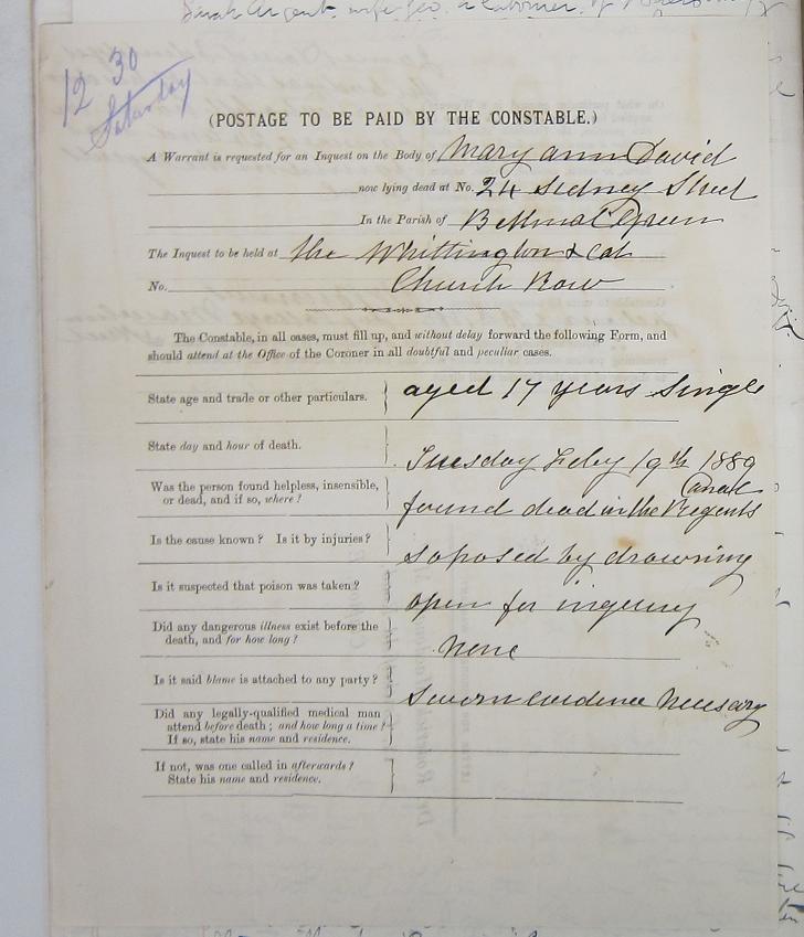 Yes, looking at those low figures in Spitalfields, we ought to think about the impact of the movement of bodies upon the inquest. It's good question to ask--how often did inquests bleed from Spitalfields into other parishes like Whitechapel and Shoreditch, because of the location of the body? Like you say, mortuaries had a big impact on the Chapman and Kelly inquests, leading to a change in jurisdiction for Chapman's, and then a conflict at Kelly's. There are also other circumstances: Louisa Ellesden's double inquests were caused by economics, throwing the cost of burial back onto Whitechapel.