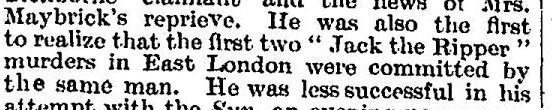Three articles (England Sends Her Spies, The Third Man and The Thomas Barton Affair) dealing with the issue of what Scotland Yard detectives were doing in North America during the latter part of 1888. The link here takes you to a gateway to all three articles:
