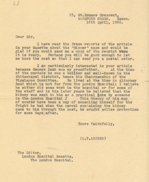 Apologies if this is the wrong place to put this, but since I don't really want any info specific to the letter that Lusk received, can't think of where else it should go.