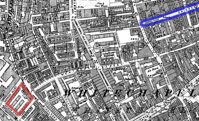 The son of the grocers also lived locally, in Petticoat Square at the end of Wentworth Street (red on the map, below). His daughter was born on the day of the Stride inquest. I've not been able to uncover anything whatsoever about Petticoat Sq.