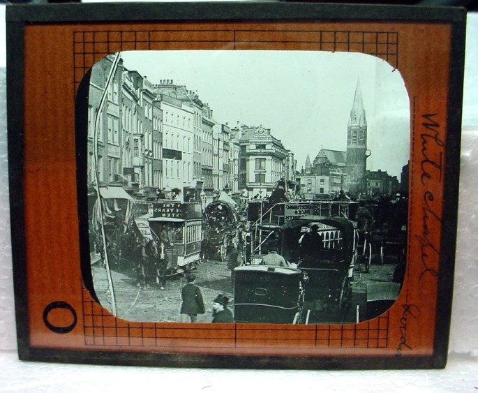 Magic Lantern Slide of Whitechapel, London. Slide measures 4" by 3 1/4".