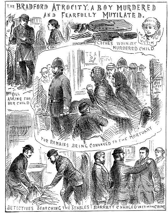 The other notes I have on the Gill case state that Johnnie's family used his 5-Pound Life insurance policy to pay for his funeral (hence the impressive headstone). Neighbors donated flowers. John was buried in Windhill Wesleyan Cemetary; it was supposed to be a private burial because his family was in such an emotionally fragile state, but hundreds of people turned out for it, requiring 10 policemen to maintain order. Shortly afterward, an anonymous "friend" donated 2 Pounds to help the grieving parents with expenses- they seem to have spent all they had on the funeral.
