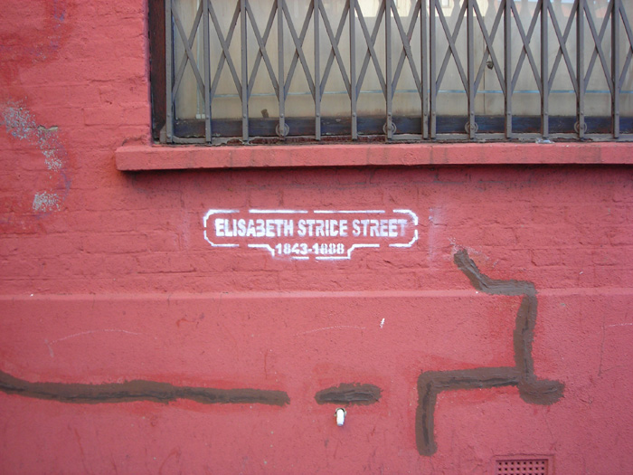 I went for a walk round the east End two weeks ago, and noticed that three of the victims have been 'immortalised' by painted signs on walls near to the places they were murdered - Elisabeth Stride (spelt that way on the sign), Catharine Eddowes and Mary Ann Nichols have been thus honoured by signs bearing their names. Mary Kelly and Annie Chapman have not. I wondered if anybody knew of this? Why it has been done? Why have two of the victims not had signs painted for them?