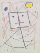 I believe, without being anywhere near sure, that one of his "mask" series is the painting in question. But have no idea. I have tried to find the answer, but throw it open to you all to help perhaps?