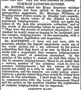 The quote you gave is an extract from a reply by Home Secretary Matthews to a question from an M.P. named Howell.
