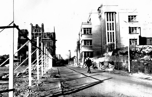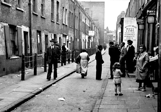 As I remember it, Ken, the south side of Durward Street was lined with plywood boards attached to the posts visible in the photograph. I recall passing one morning and looking on in horror as a mechanical digger ripped up the old Victorian cobbles/pads. Since the normal procedure for the period was simply to tarmac over the existing road surface, I can only assume that access was required to the underlying structures. One day the penny will drop and someone at Tower Hamlets Council will finally recognize the lost tourism opportunities resulting from the seemingly wanton destruction of the area.