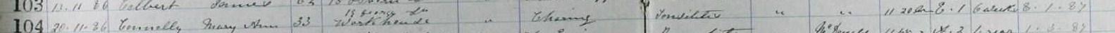 This Mary Ann Connelly was born in 1854 in Poplar. Her parents, Patrick and Mary, were Irish. She appears from the census to have had no occupation, although she does appear in the infirmary records as a 'Hawker', as well as 'prostitute' on other occasions. She is listed in the 1891 Census as a sick inmate at Bethnal Green workhouse.