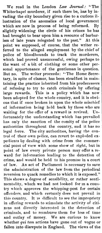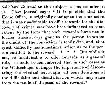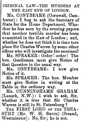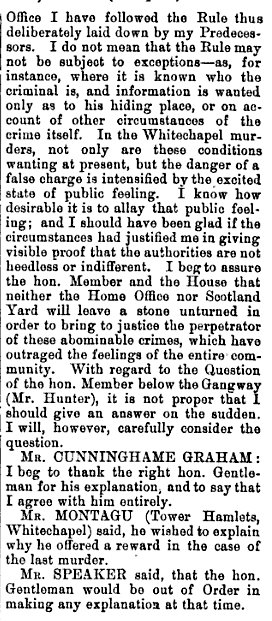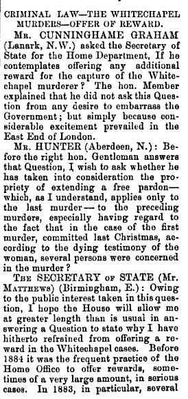 I'm pretty sure that the discussions in Parliament occurred within a week of the murder of Mary Kelly- in other words, while the investigation was still new & ongoing.