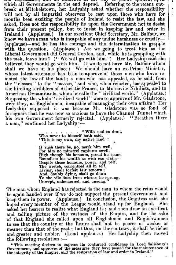 Despite Burnaby’s untimely death, the Primrose League continued as the active wing of the Conservative Party and Randolph Churchill played a prominent part.