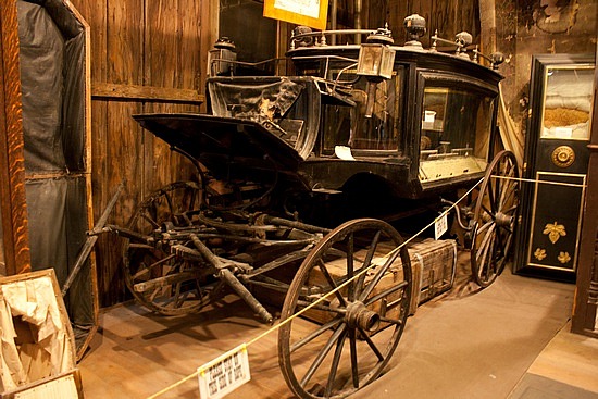 The hearse is in the area directly behind the stage, in the backstage where the performers got ready. It was custom-made and cost a fortune- it was by far the most expensive hearse in America. Tombstone was a silver-mining "boom town", so money flowed like water. Unfortunately, so did blood. The Bird-Cage is supposed to be haunted, and the backstage is said to be the most haunted area. It's certainly creepy...the whole Bird-Cage Theater is creepy.