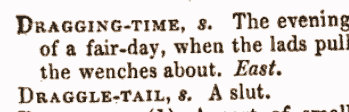 "Dragging-time" is supposed to be a very old provincial phrase.