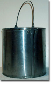 This article has some more pictures, including one showing a variety of granite-wear beer pails. (That's a kind of enamel-clad metal often used for buckets or the pots, pans, cups, etc. meant for camping. Speckled blue, black, white & gray are the most common colors.)