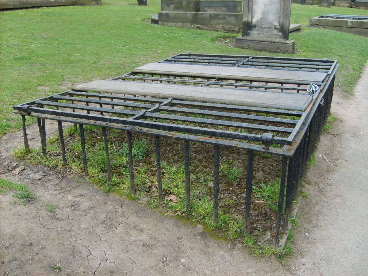 These photos are from the famous Greyfriars Kirkyard in Edinbugh. The awful metal railings and other devices people had to resort to are called "mortsafes"= "deathsafes".
