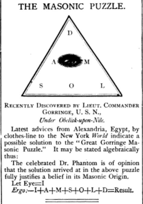 I am slightly embarrassed even to bring up matters Masonic, but they are there. (Coincidentally, I hope!)