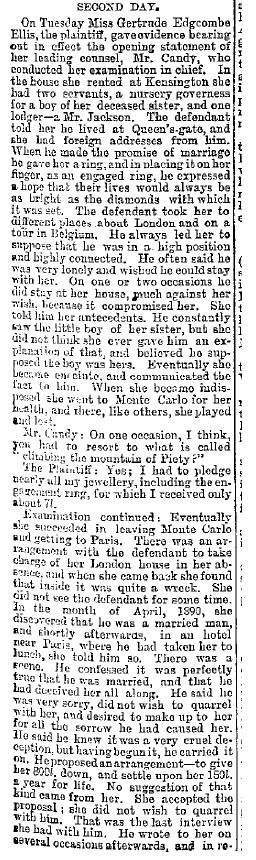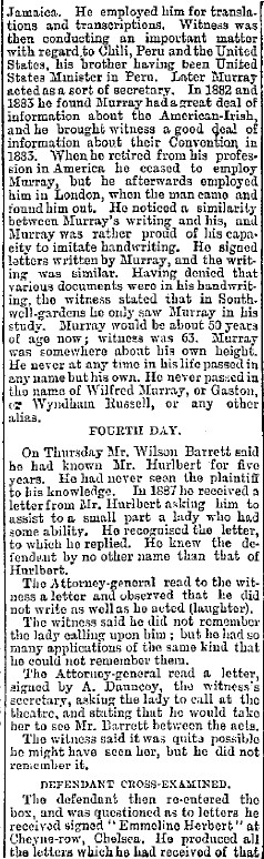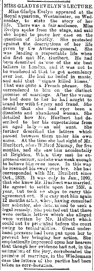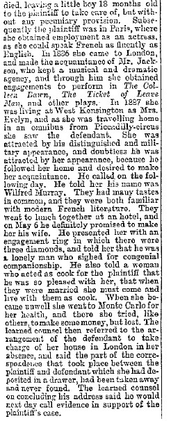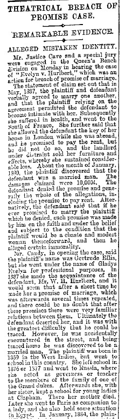 Hello All. the following, from "Lloyd's Weekly Newspaper" July 26, 1891, describes Gladys' second go with WHH, beginning October 1888.