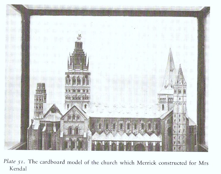 Howell and Ford say that Merrick "sent her [Mrs, later Dame Madge, Kendal] one of the cardboard models he had constructed with the aid of the nurses. It was a delicately detailed model of a Gothic church ..." (p.148)