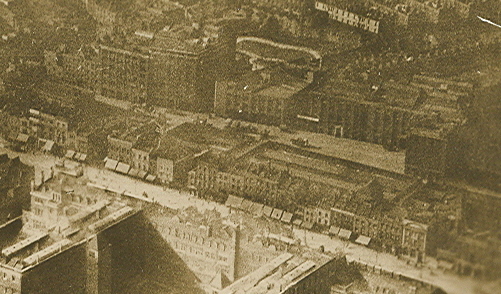 This is obviously an aerial photo. I think we can rule out it's being take from a balloon due to a number of factors including altitude (it would have to be a tethered balloon). Therefore, it is obviously post-1903 and probably several years later than that. My guess would be circa First World War but it is curious that there seems to be no vehicular traffic.