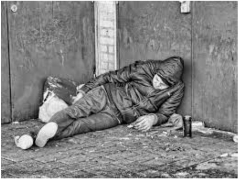 Downtown, it is not particularly unusual to have to step over the top of someone who is literally sprawled in the middle of the pavement.