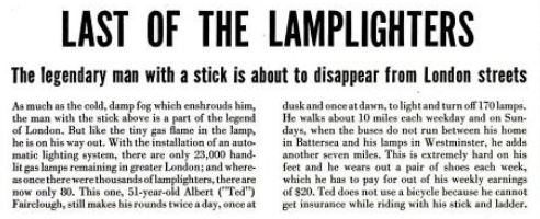 Good find sir, thanks for this. I find it ironic that the lamplighter is named Fairclough, our friend for other reasons...