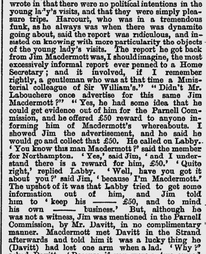 First there is a report of McLean seeing McDermott in London in the September 15, 1888 Eagle on page 6. I'd advise you reading it and comparing it with the one earlier on this thread - some details are slightly different but the story is basically the same.