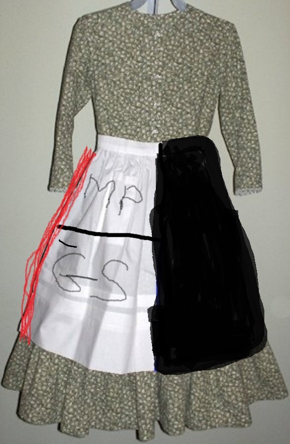 how could she have been wearing an apron when the two pieces found and as decribed, when matched could not have made up a full apron why cant to see that?