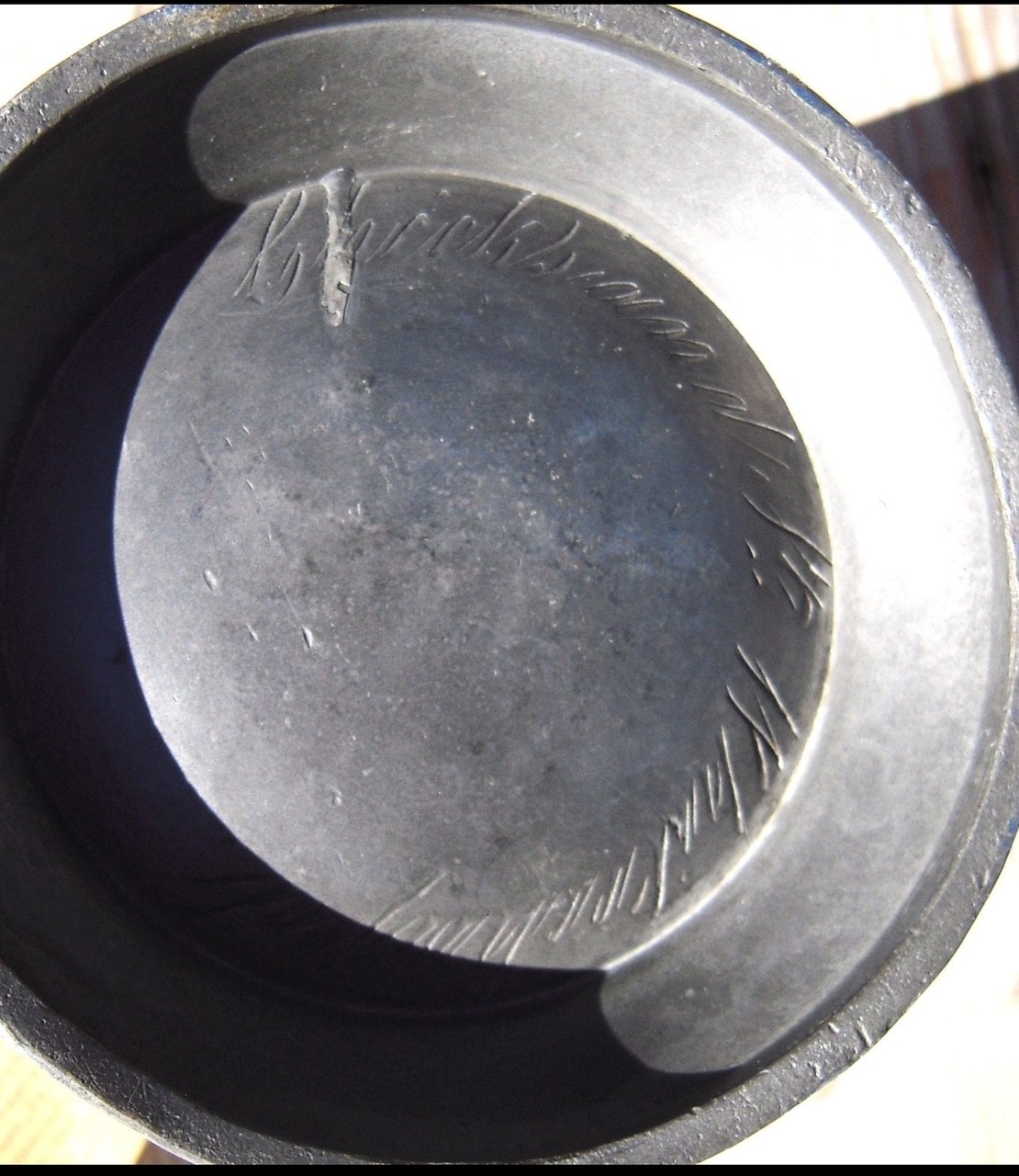 I know Chicksand Street was a very small strip of of road compared to all the other streets during the time.The original verification marks stamped on the tankard date to George IV, so about 1830s, but it was re-verified with a VR67 mark that was used from 1881 onward.