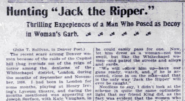 John T Sullivan was certainly in London at the time of the murders. The press report below shows that he was performing at the Lyceum with Richard Mansfield