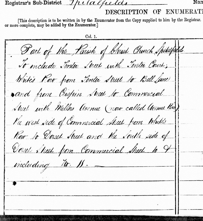 I'd very much like a second opinion as to where Tenter's Court might have been. The way the 1871 census is written it appears to have been between 22 & 23 Tenter Street. If you have a look at the map link above (no numbers on the houses) the only court type area that I can see is right at the top of Tenter Street, near White's Row, there appears to be access to a small area via Butler Street as well?