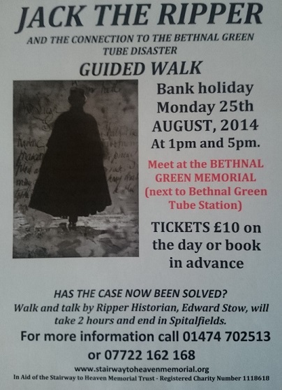 There will be a special Jack the Ripper event on Bank Holiday Monday - 25th August 2014.
