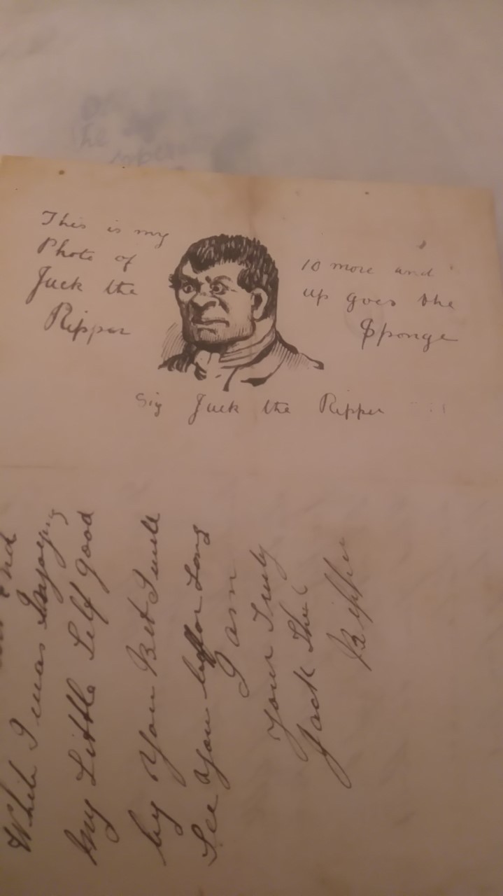 I'm not convinced it's real but another thing that makes no sense to me is that he's written, (from memory) 'This is my photo of Jack the Ripper' and a drawing, and at the other side of the drawing '10 more and up goes the sponge...' what does this even mean?