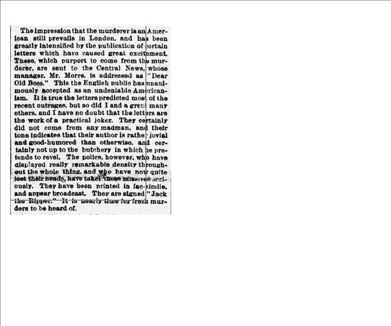 To me, the first sentence is the telling one: "The impression that the murderer is an American still prevails in London".