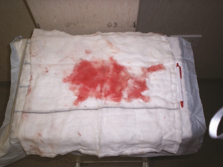If it was only taken to clean himself up I am thinking he needs to distance himself from this rag at the earliest opportunity, preferably the nearer the crime scene the better so as not to leave an indication which way he escaped.