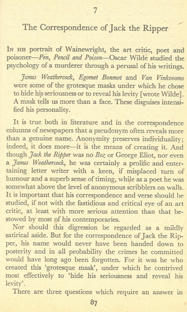 I've not read any popular books prior to those two that so heavily promoted the idea of Jack delighting in cryptic messages of one form or another. I'd wager that books such as these have had a huge influence on the way we've viewed the case in the past three decades or so.
