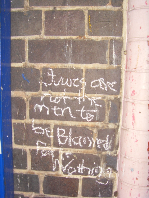 Ive finally managed to locate a photograph of the Goulston Street Graffito.