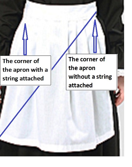 So an important question is if she was wearing an apron what happened to the piece of the apron with the second string attached. You cant tie an apron with just one string. If there had been a string on the second piece, I would have expected it to have been mentioned in the process of identification.