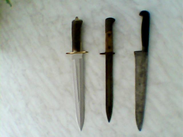I also believe that Martha Tabram is a Ripper victim. A statement given at Tabram's inquest by Dr. T. R. Killeen, makes me understand that two knives were used on the mortal attack on Tabram. Dr. T. R. Killeen said that the large knife COULD of been a sword bayonet or a dagger, I don't think nothing is mentioned of a one-sided blade or a double-edge blade. The three knives in the picture below are all large knives but totally different to each other.