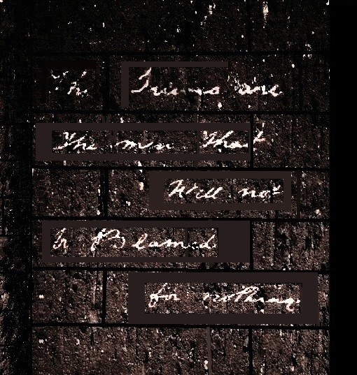So, rather than a whole wall, perhaps the writer had less (vertical) room to work with, using the black dado to get better contrast with the white chalk. Taking Halse's "three lines" and applying the idea that the copy in the Home Office memo was "word-wrapped", we could be looking at something like this:
