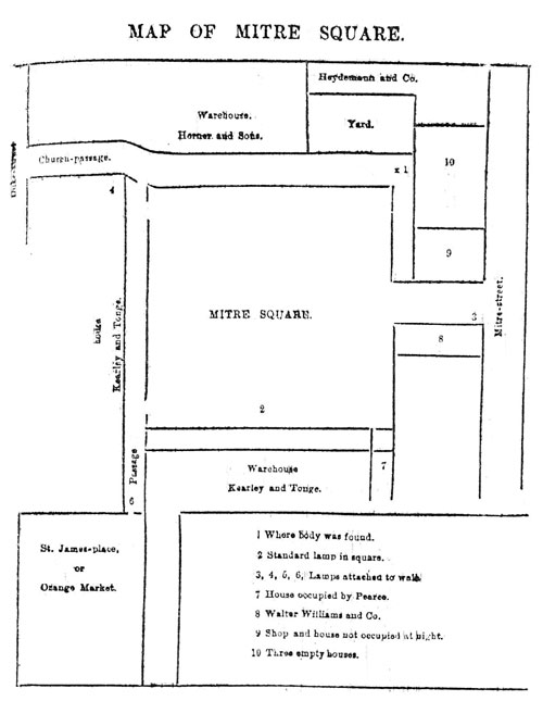 "At 20 to 2 on Sunday morning I went down Duke Street and down Church Passage as far as Mitre Square..."