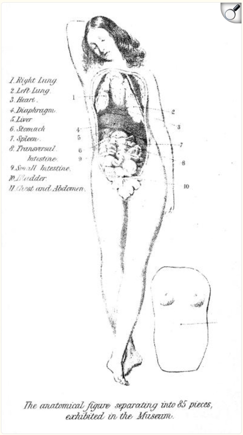 These wax models were a combination of artistic beauty combined with anatomical accuracy; whereby parts of the models could be opened up, dissected and removed to reveal the inner workings of the human form.