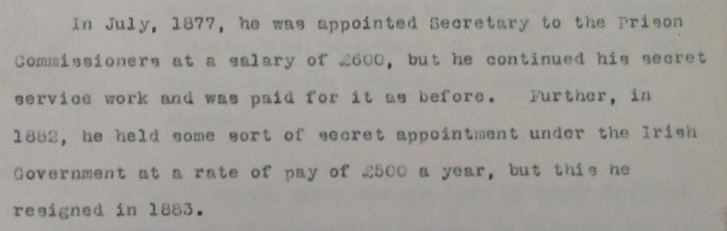 Extract from a memo dated 8th April 1910 sent to Prime Minister Herbert Henry Asquith detailing Sir Robert Anderson's past history—
