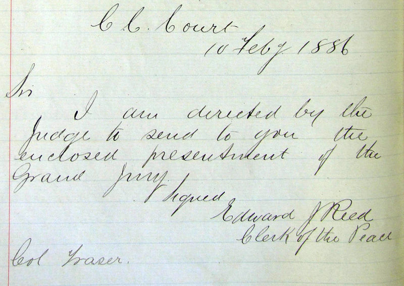 According to a further report dated 8 February, the hapless youth (named Brooker) from the Standard was interrogated, and after an initial attempt at denial, he admitted that he had known about the matter. He said he had been told about it by a man named Marriott, employed at the Times office. Marriott in turn was questioned, but denied having told Brooker anything of the sort. The enquiry was still proceeding, and the solicitor was considering whether there was sufficient evidence to institute proceedings against three men who were suspected - Marriott, Todd and [?]Double.