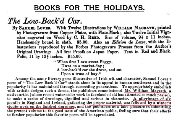 Evidently William Magrath was visiting England and Ireland in late 1888, as indicated by the advertisement below, which appeared in Lippincott's Monthly Magazine for December 1889 (available at http://books.google.co.uk/books?id=F9HUAAAAMAAJ), under the title "J. B. Lippincott Company's Monthly Bulletin of New Publications":