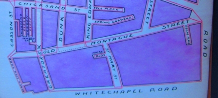 PC Neil was very likely somewhere on the green stretch as indicated on the map below, while the 2 men were passing Thomas Street in Buck’s Row (blue line). And when the 2 men turned right at the corner of Buck’s Row/Baker’s Row, Neil had already entered Thomas Street or was at least quite close to doing so.