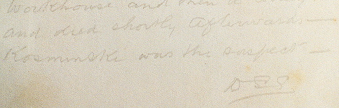 1. The important marginalia, containing the name Kosminski, is written on an end paper and in a different pencil than can be found anywhere else in the book.