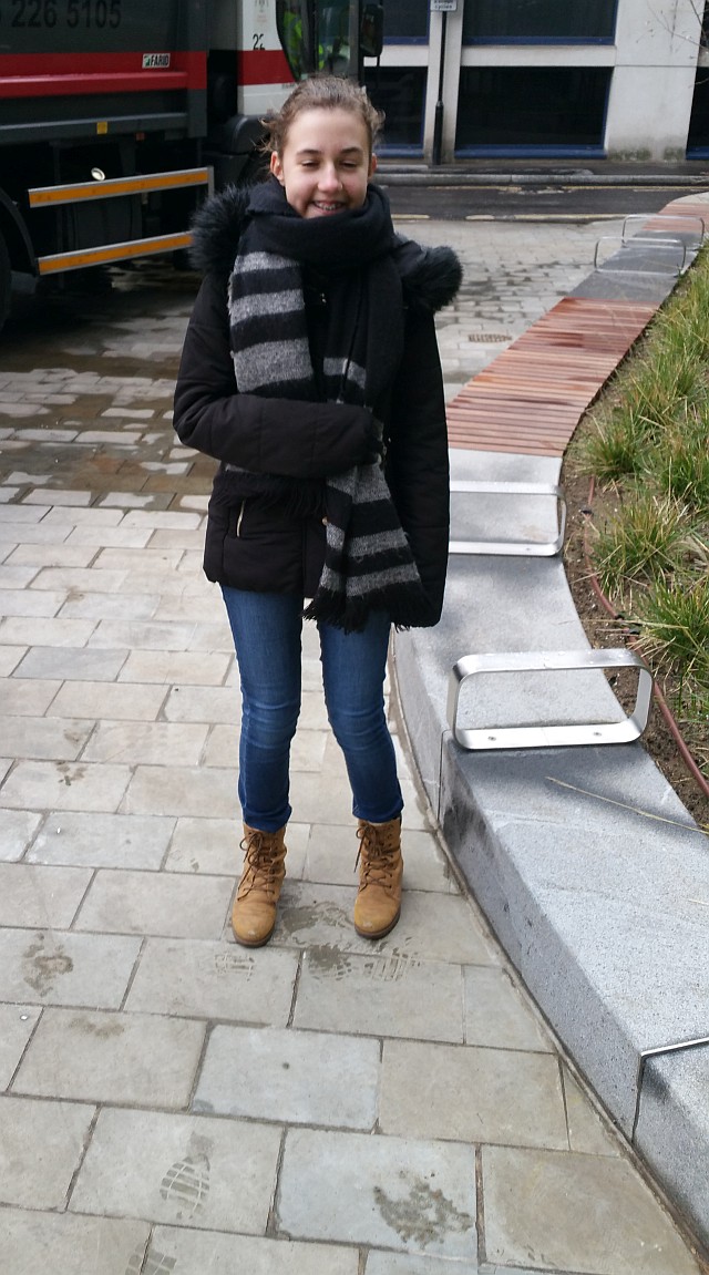 My little Ripperoligist standing as close to the 'scene' as we could guess in Feb 2018. This was about where the 'park bench' was that stood there for many years after the last redevelopment in Mitre Square.