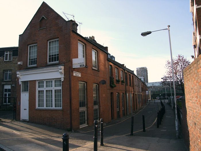 A recent find. This is Durward Street; Essex Wharf is gone, but Brady House remains.