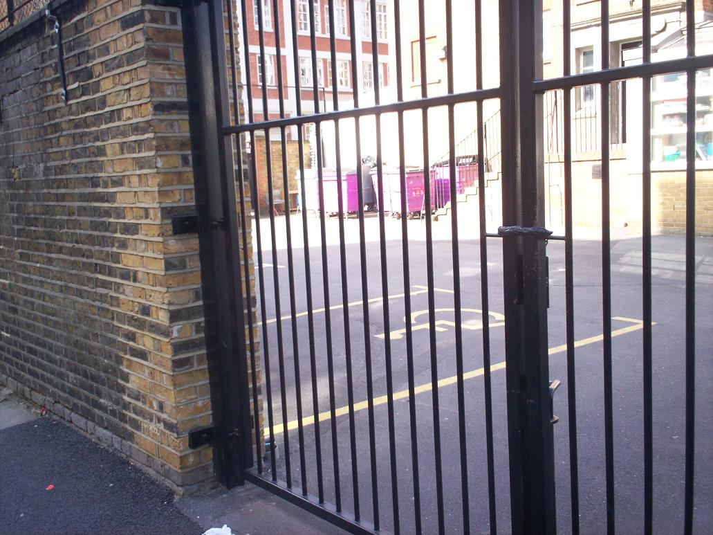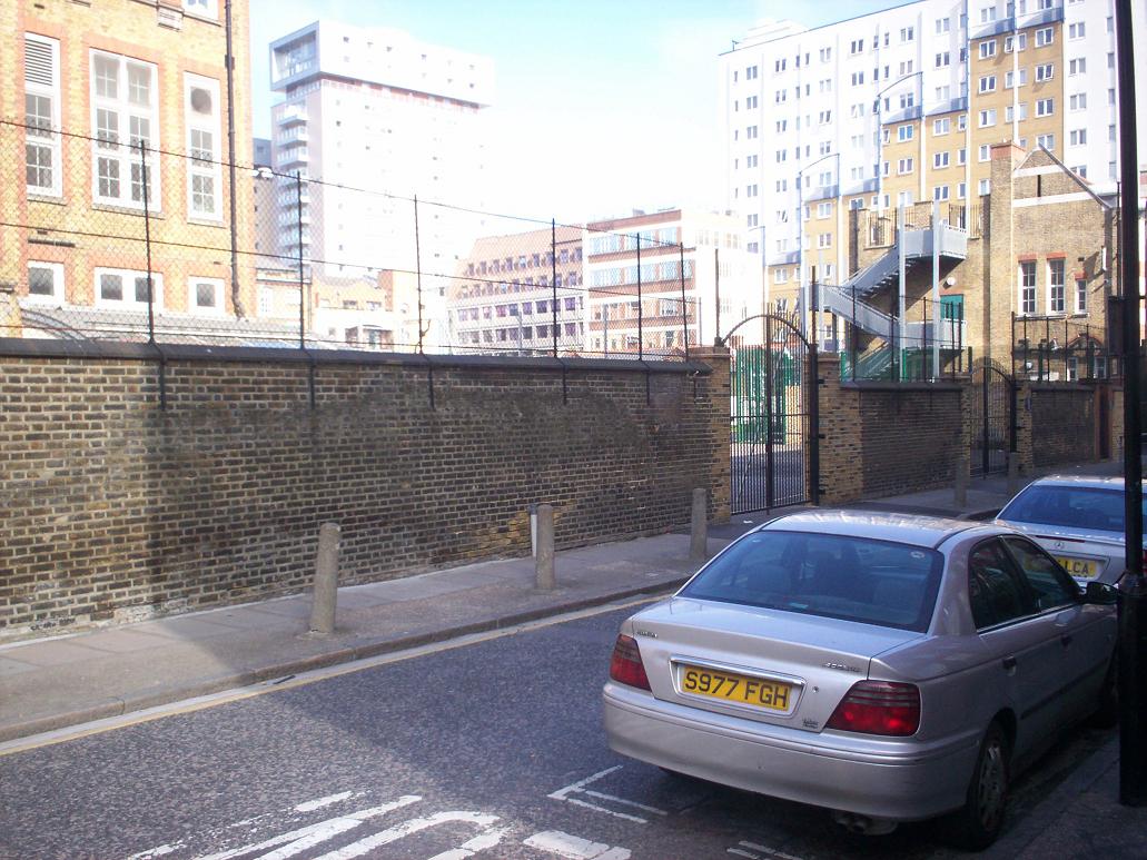 Artillery Passage as seen from outside of the King's Stores, looking east towards the Whites Row car park.