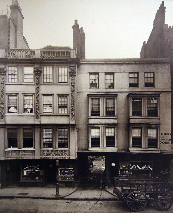 Saracens Head Yard, Aldgate 1883 with 2010 view. The entrance of 90 Fenchurch Street is on same position as entrance to Saracens Head Yard. The modern entrance to Saracens head Yard is now in Jewry Street round the corner (but now only modern office blocks).