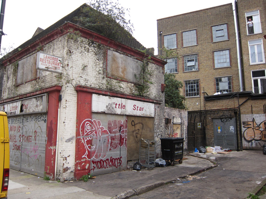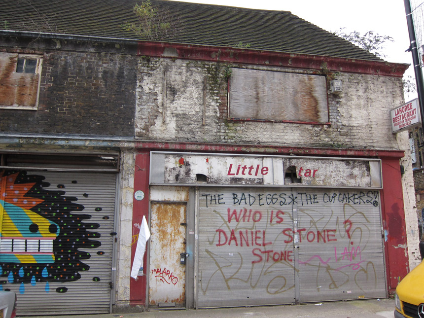 I took these photos about a month back... The first two are of Christ Church Parish Hall on Hanbury Street (I think). Then I few I took on Toynbee Street of my favorite abandoned building in the area. (Anyone know what is the deal with this abandoned building? I have a vision of artist lofts... And who is Daniel Stone?) And finally one of what I think is a section of Castle Alley... is that correct?